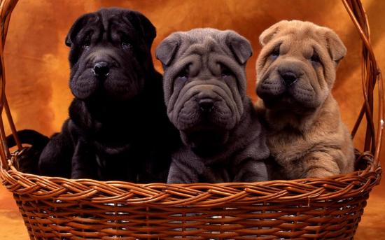 Wallpaper Three puppies shar pei in the basket