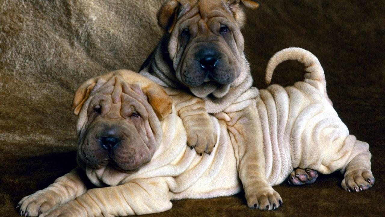 Wallpaper Two shar pei puppies in love