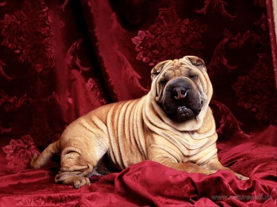 » Wallpaper Cute shar pei in red background