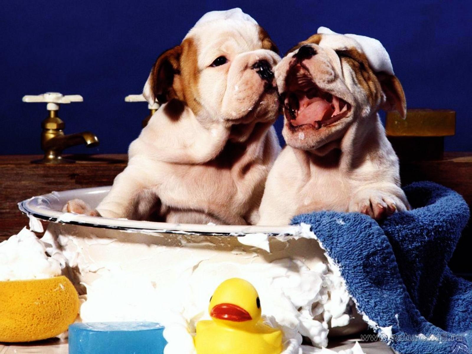 Wallpaper Two shar pei puppies taking a bath