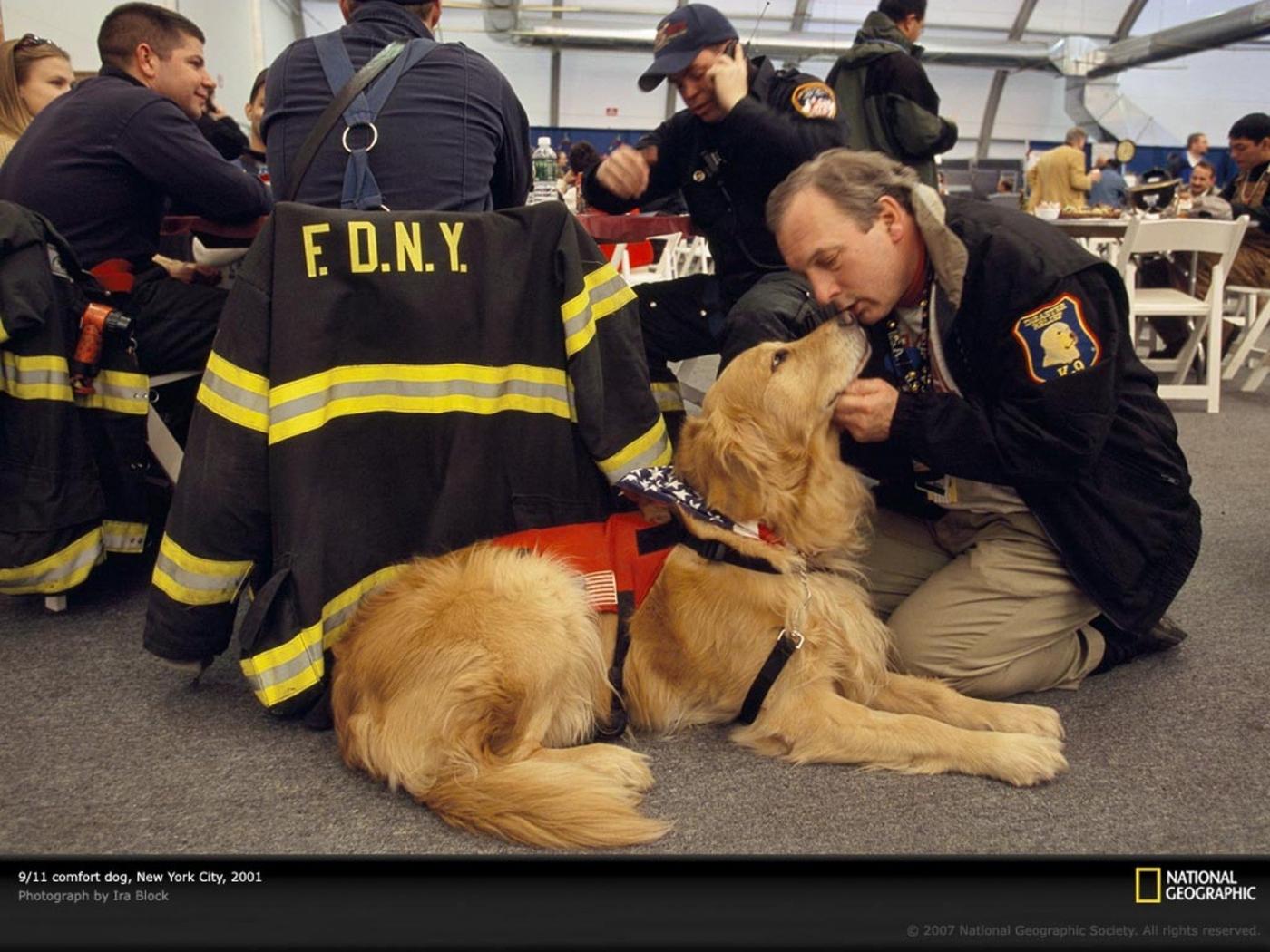 Wallpaper The man thanked the dog for the help