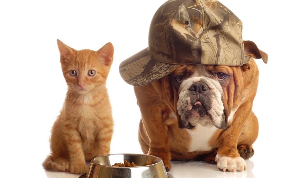 » Wallpaper Red kitten and bulldog