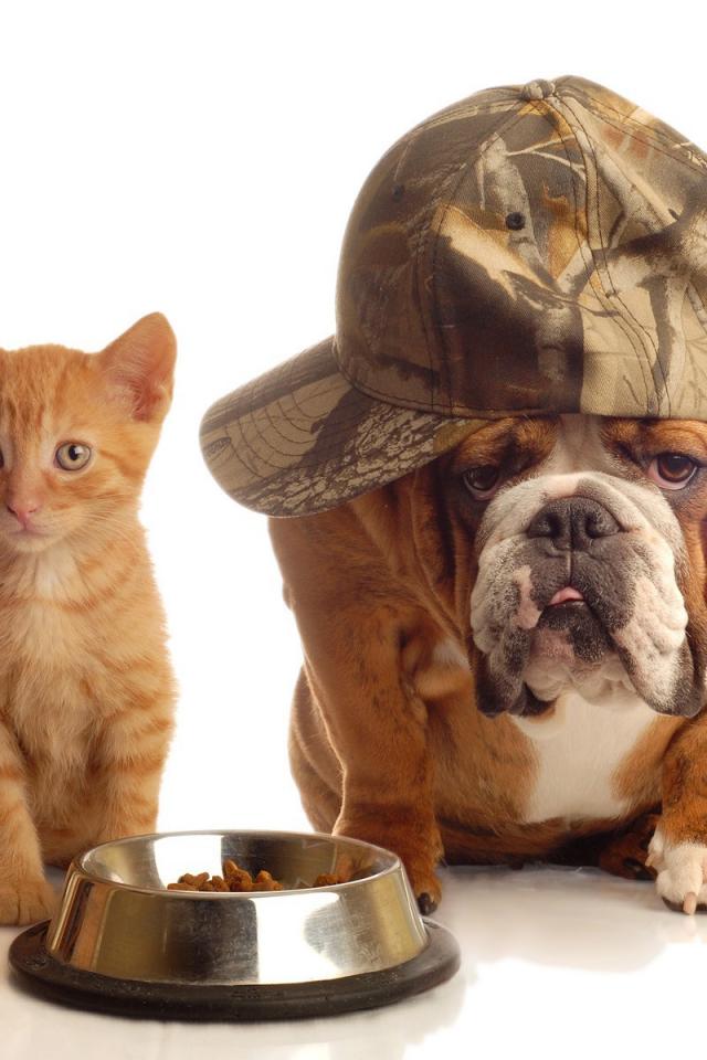 » Wallpaper Red kitten and bulldog