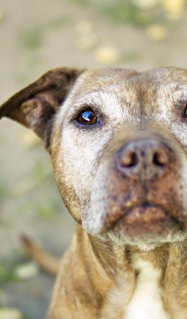 Wallpaper Young pitbull and leaves