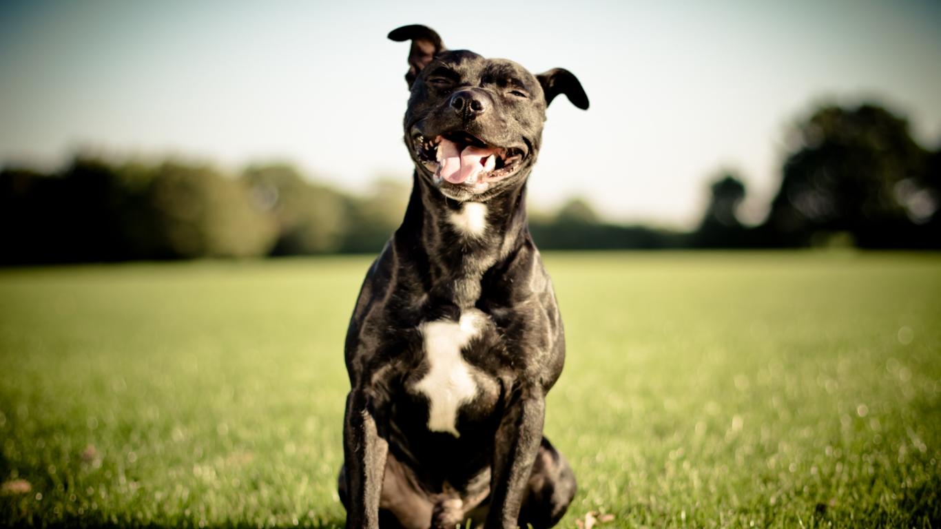Wallpaper Glad pit bull on the grass