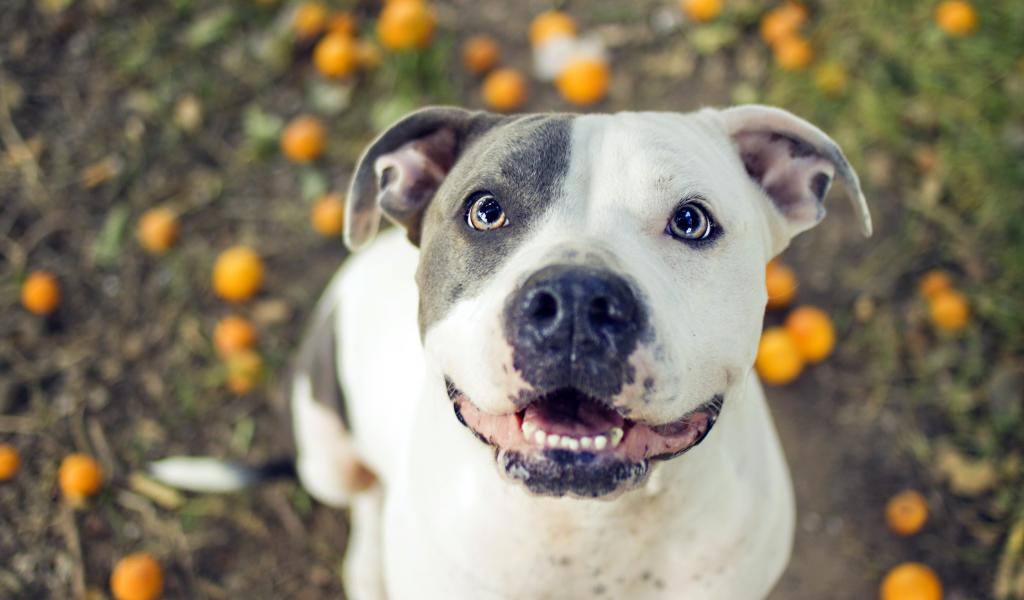 Wallpaper Joyful pitbull in the garden