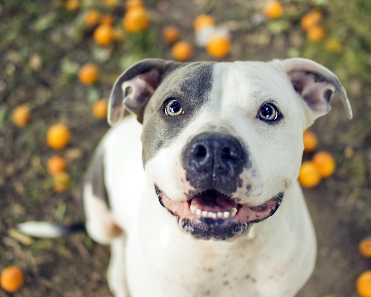 Wallpaper Joyful pitbull in the garden