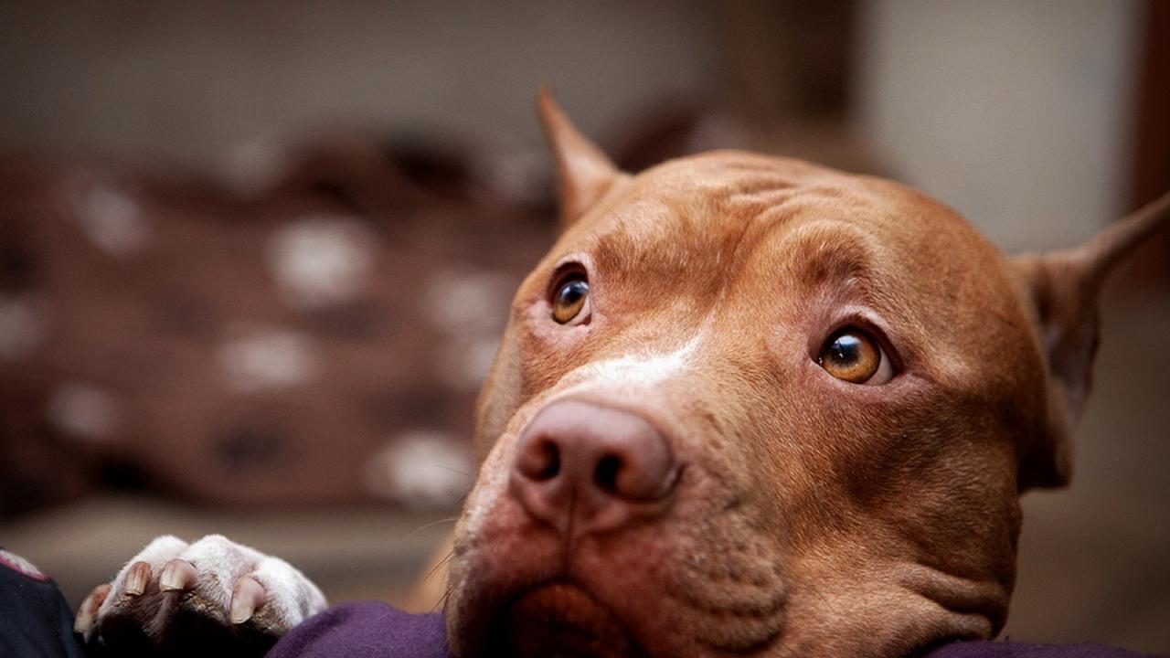 Wallpaper Thoughtful pitbull on the sofa