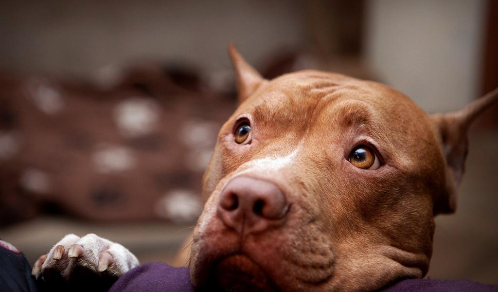 » Wallpaper Thoughtful pitbull on the sofa
