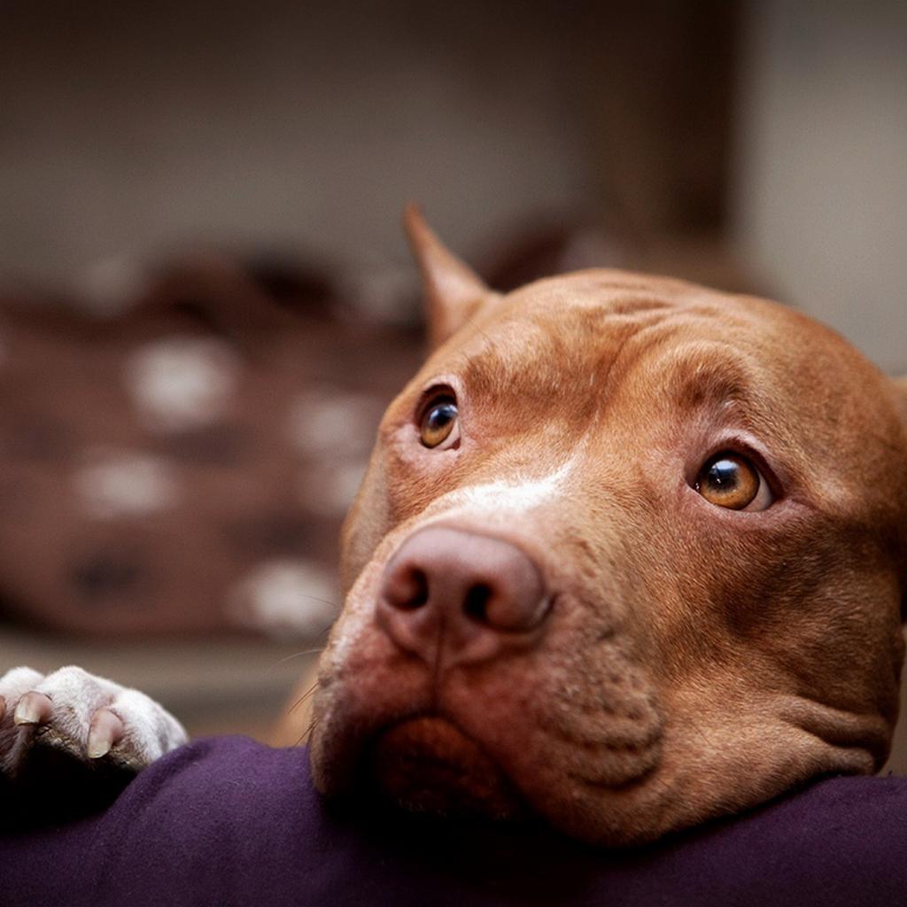 » Wallpaper Thoughtful pitbull on the sofa