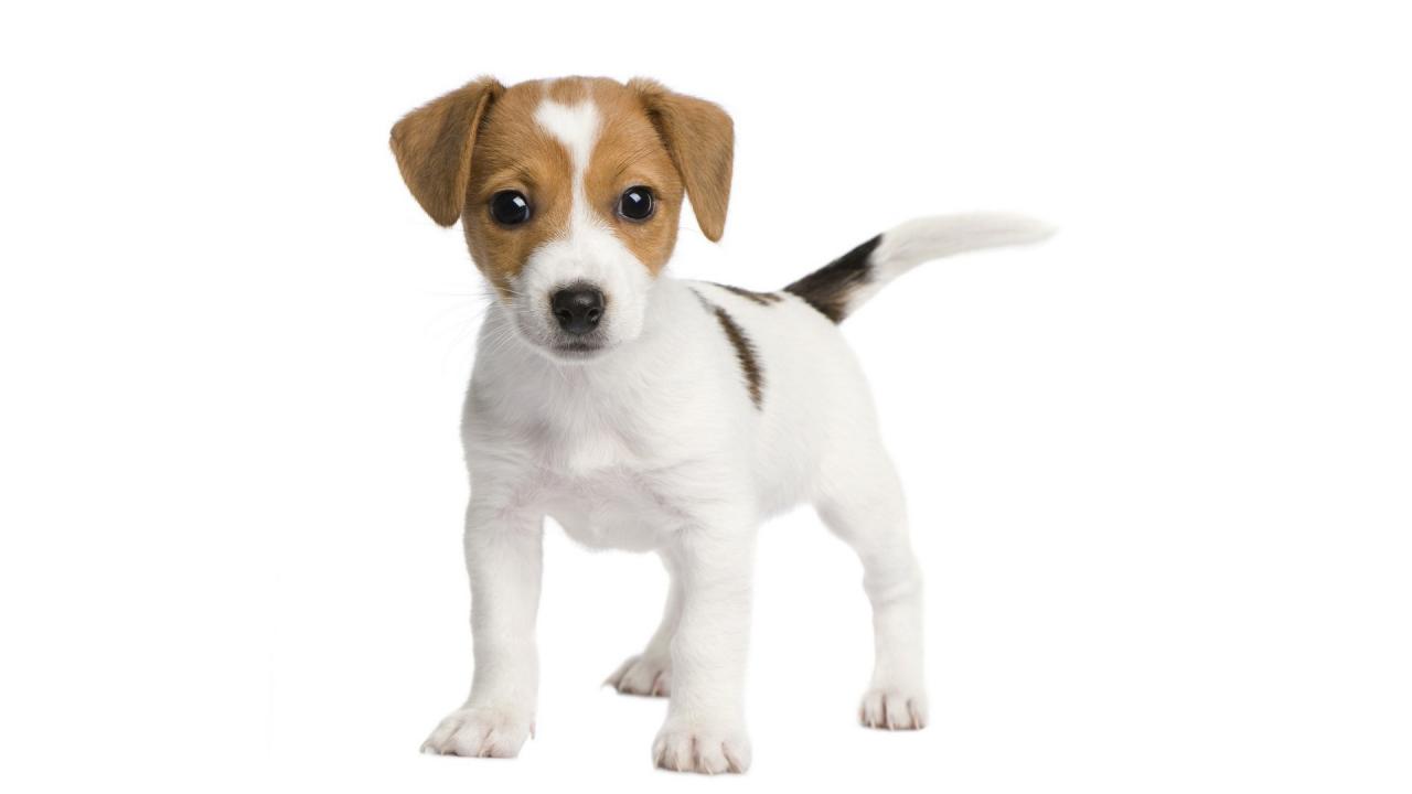 Wallpaper Funny puppy on a white background