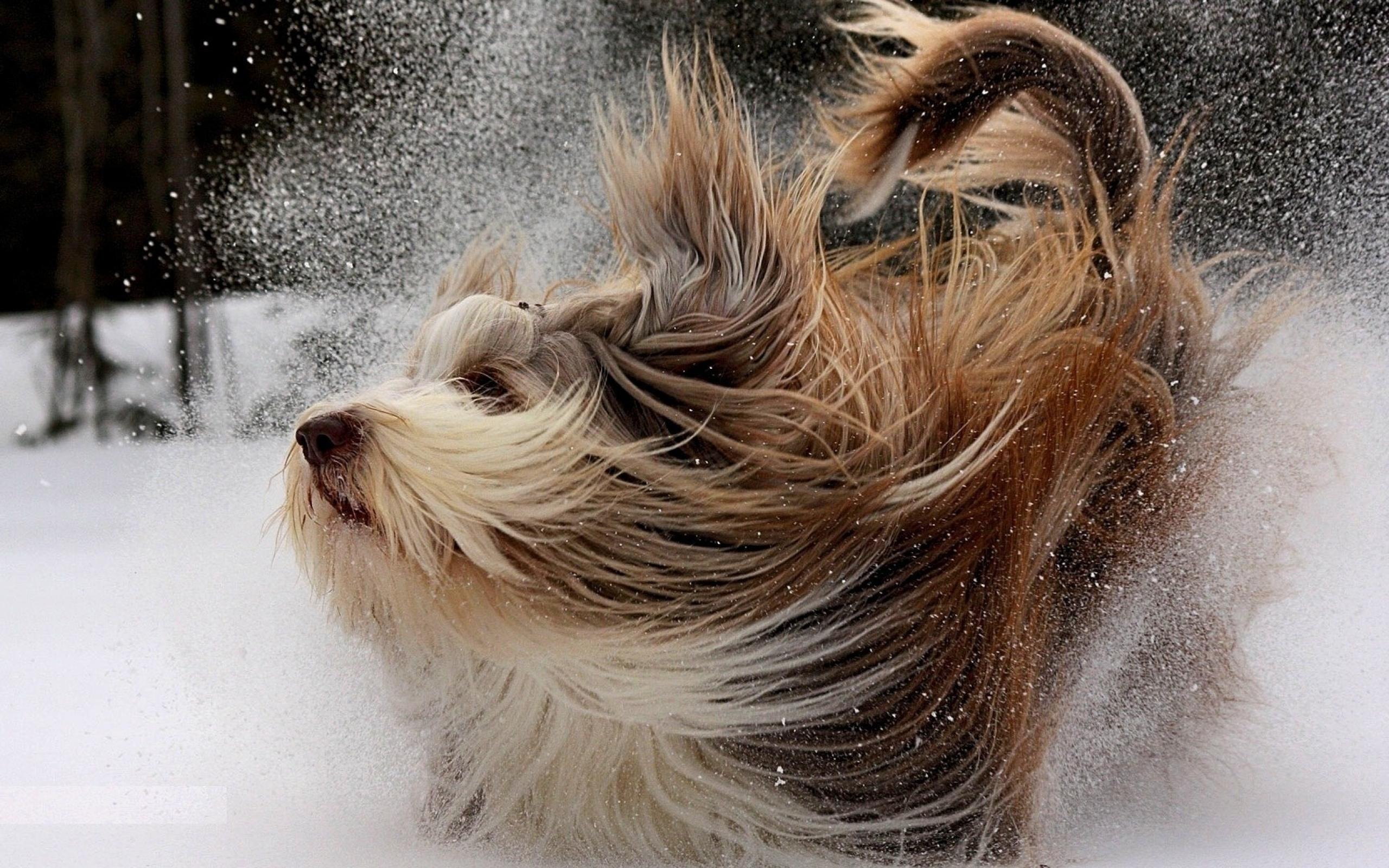 Wallpaper Dog runs on the snow