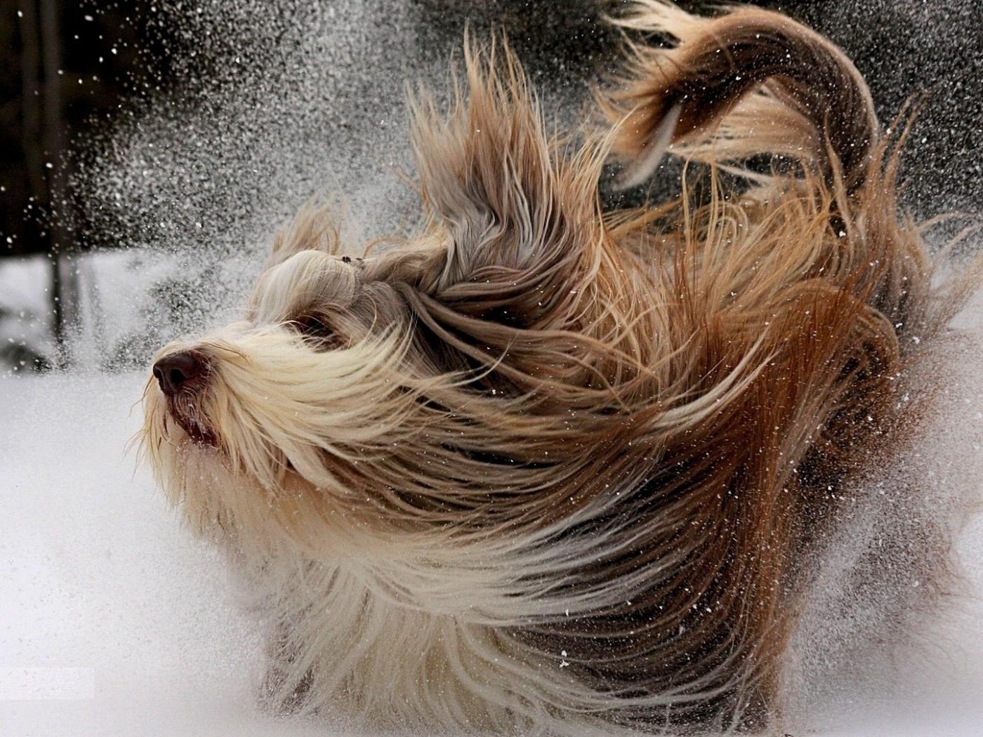 Wallpaper Dog runs on the snow