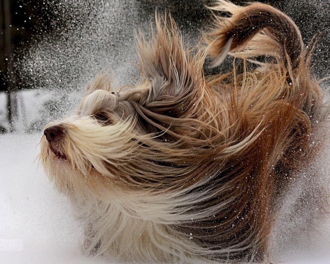 Wallpaper Dog runs on the snow