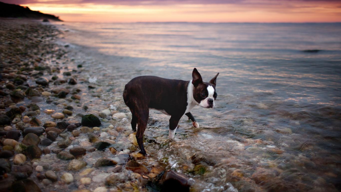 Wallpaper Black dog at the sea