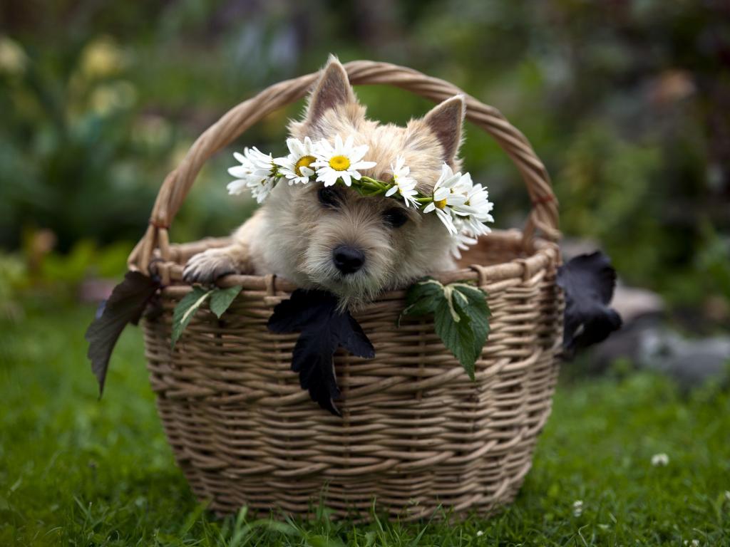 Wallpaper Doggie in a basket