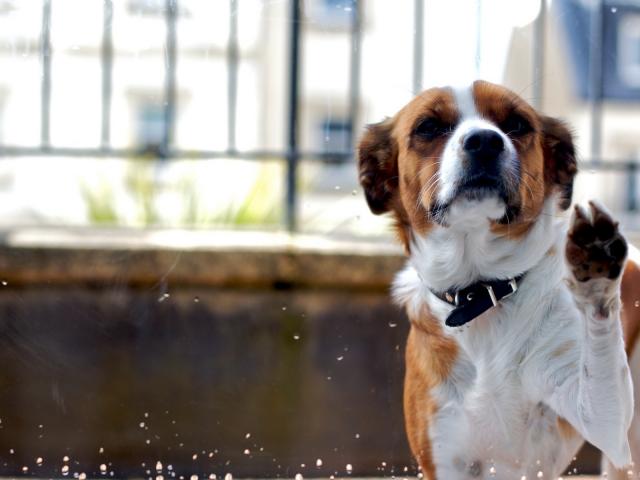 Wallpaper The dog behind the glass