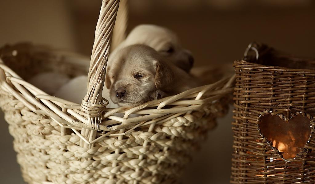 Wallpaper Puppies in a basket