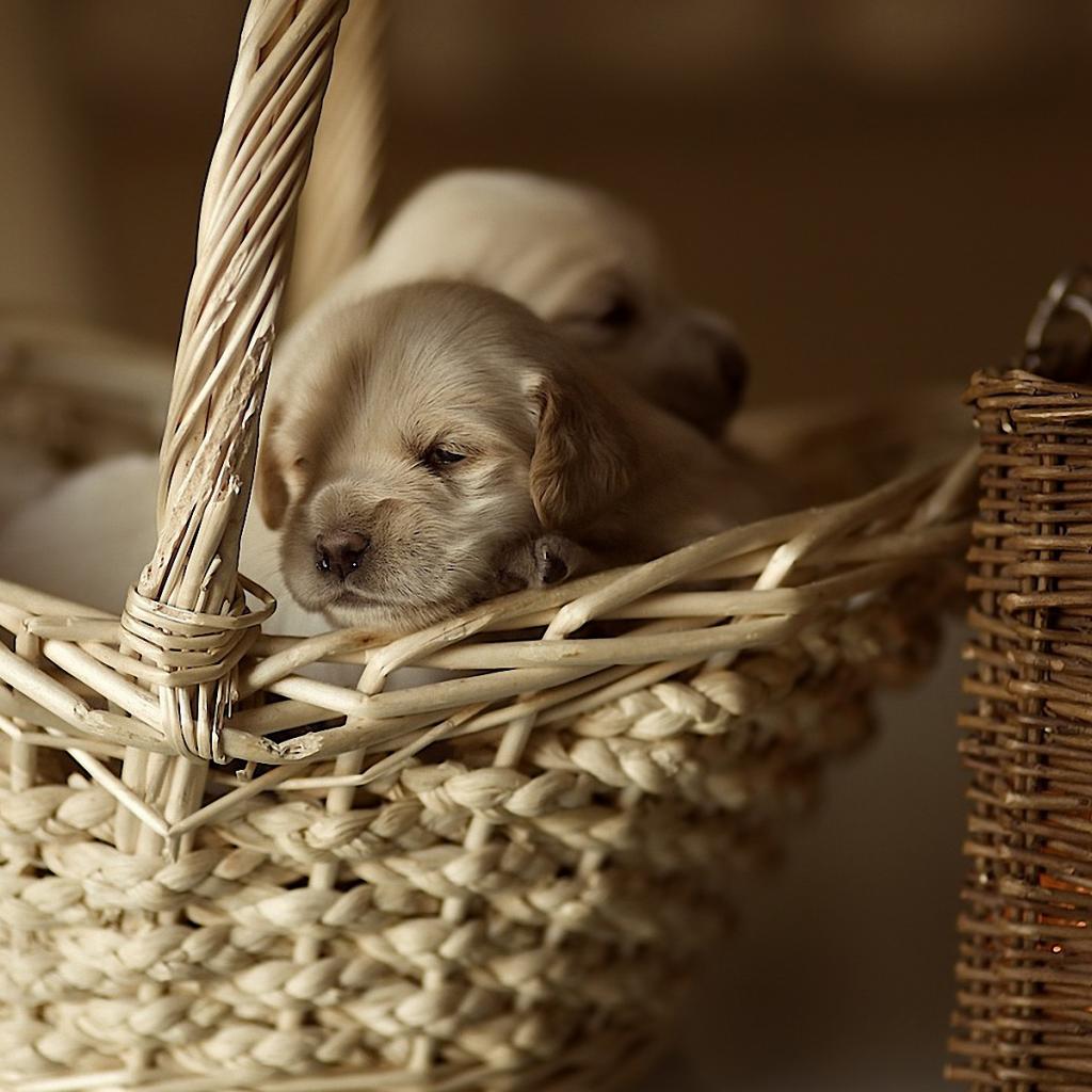 Wallpaper Puppies in a basket
