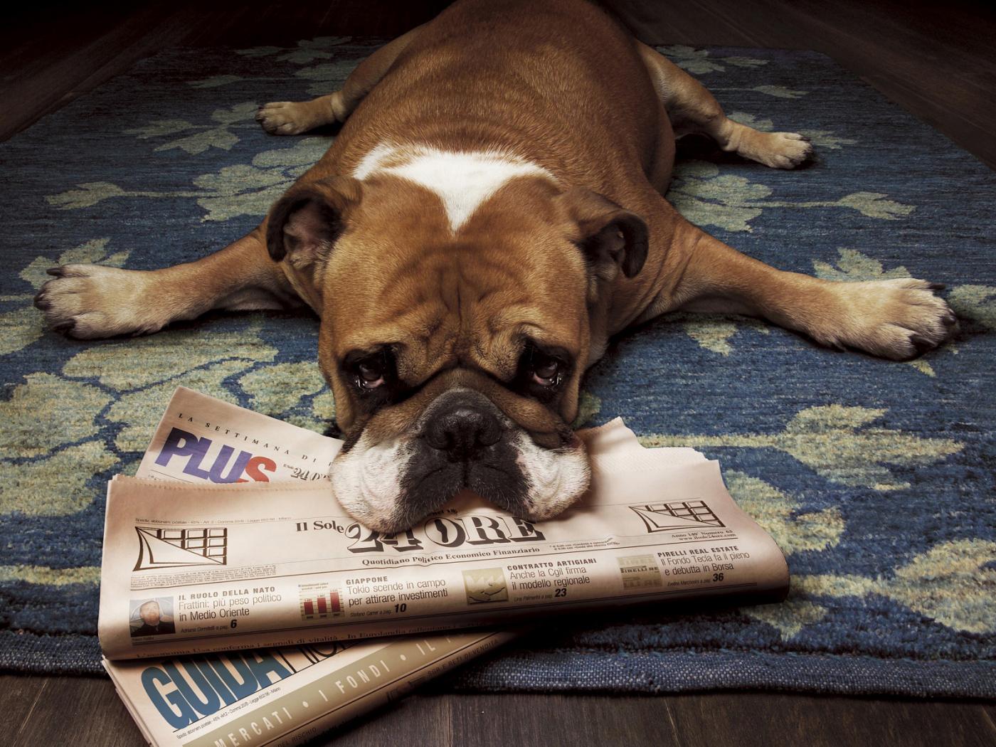 Wallpaper Dog with newspaper