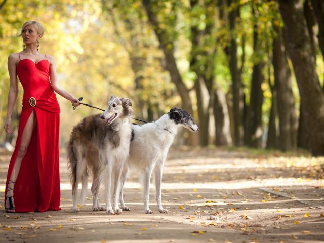 Wallpaper The girl walks dogs