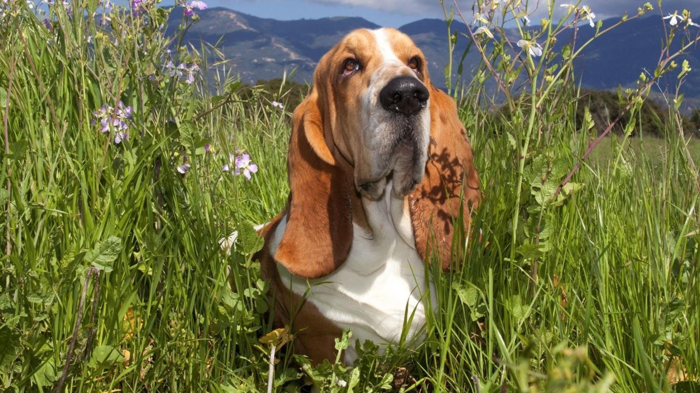 Wallpaper Basset hound in a grass