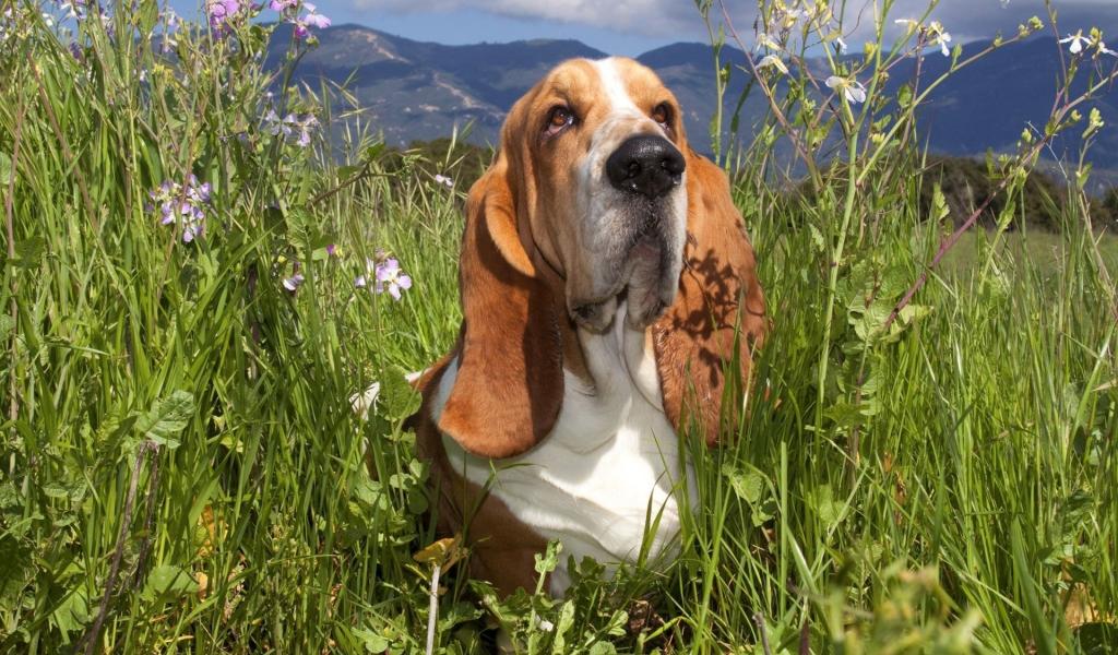 Wallpaper Basset hound in a grass
