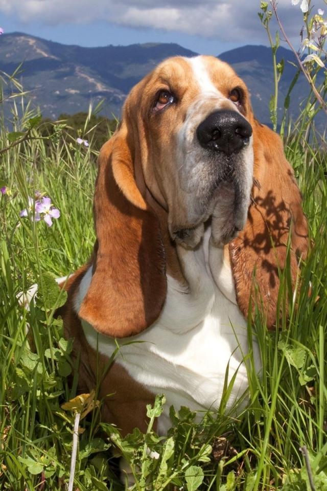 Wallpaper Basset hound in a grass