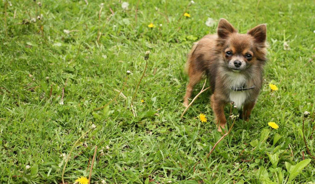 Wallpaper German spitz-dog on a grass