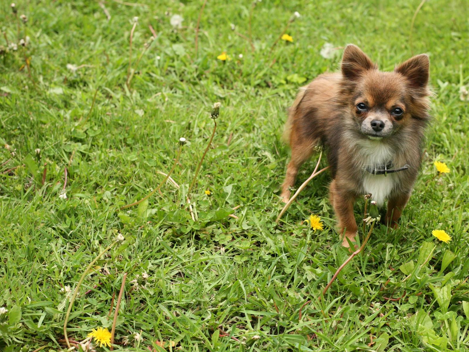 Wallpaper German spitz-dog on a grass