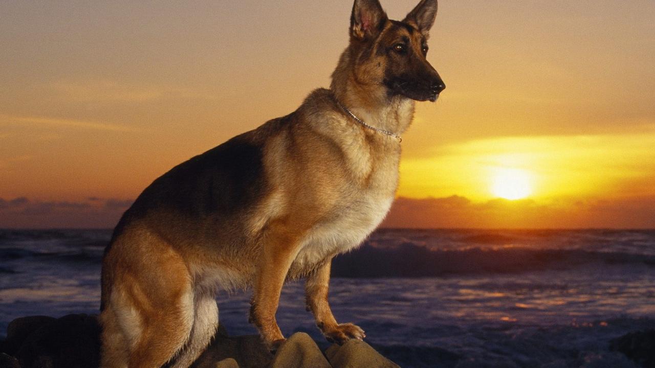 Wallpaper German Shepherd on the shore
