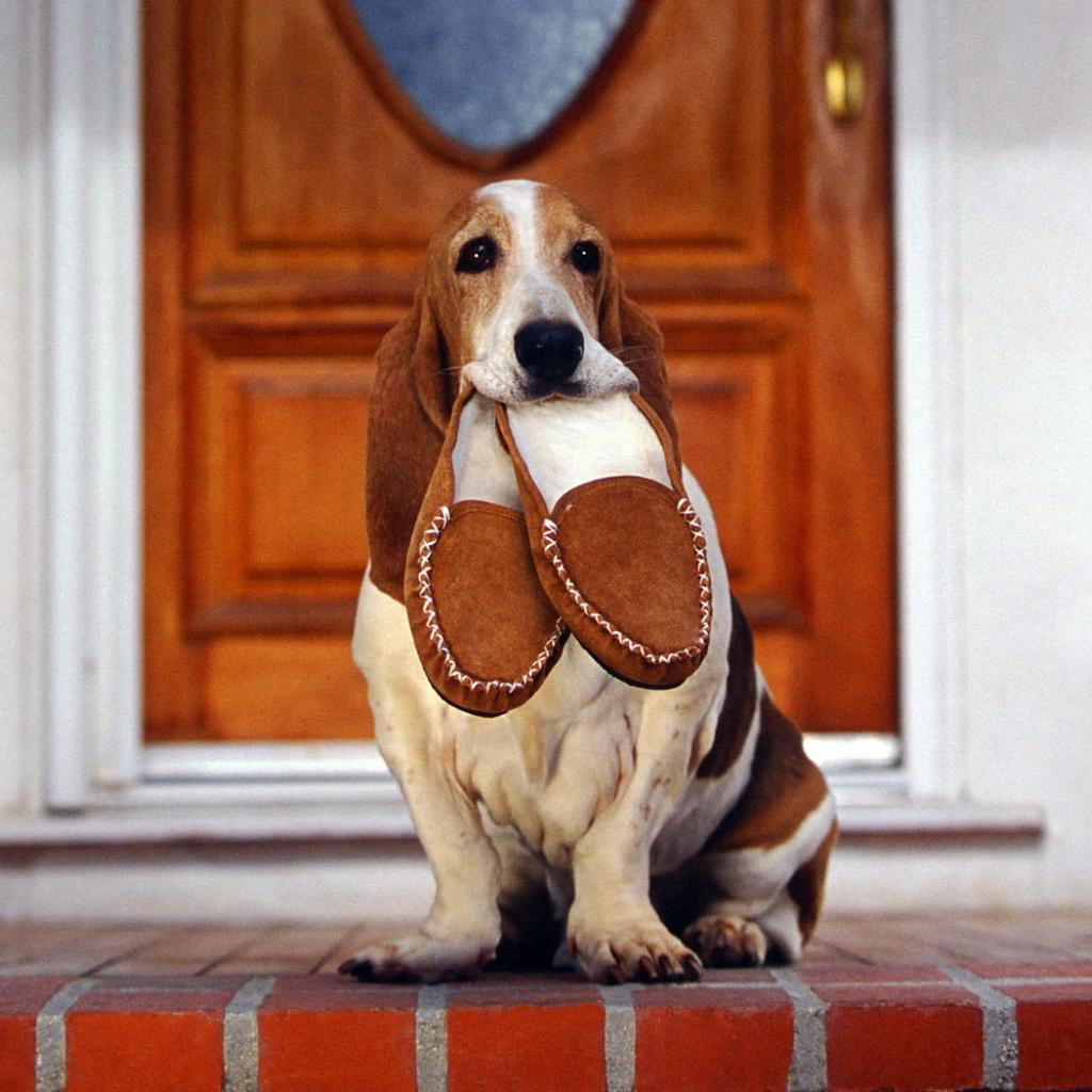 Wallpaper Basset Hound and slippers
