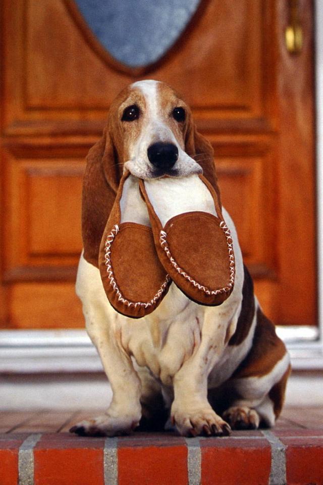 Wallpaper Basset Hound and slippers