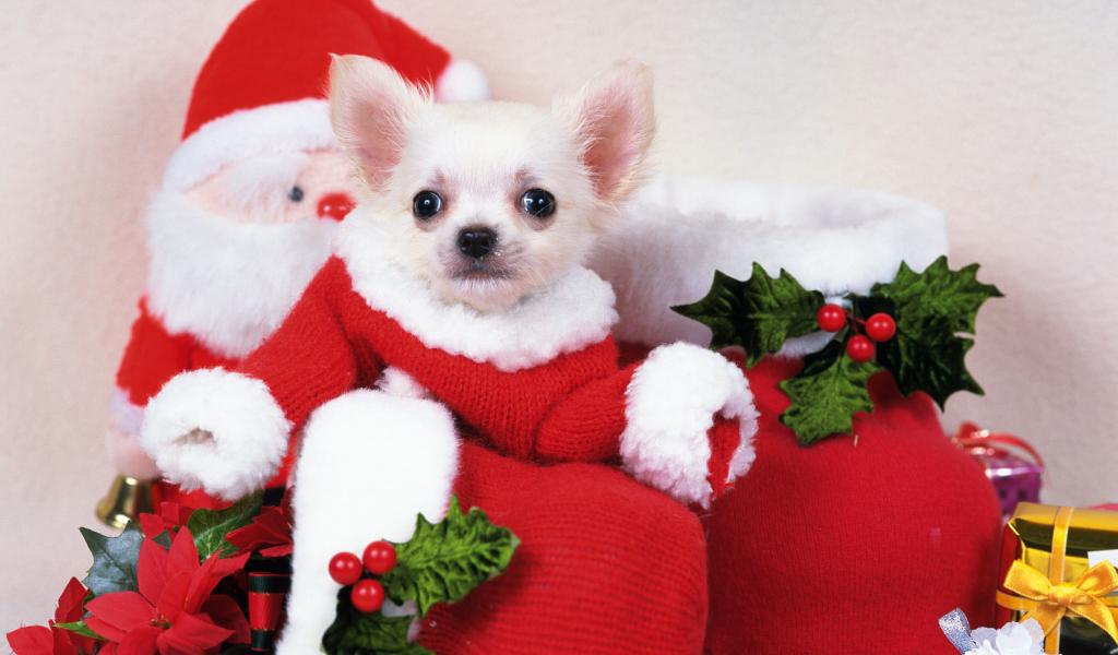 Wallpaper Santa Puppy Dog