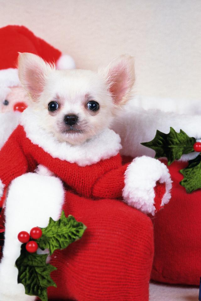 Wallpaper Santa Puppy Dog