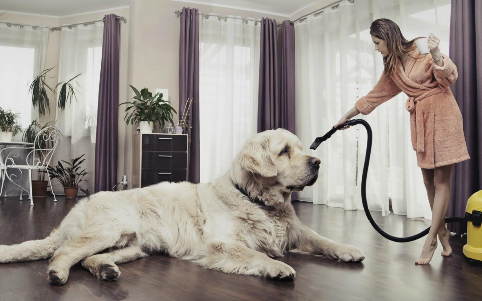 Wallpaper The hostess vacuuming dog