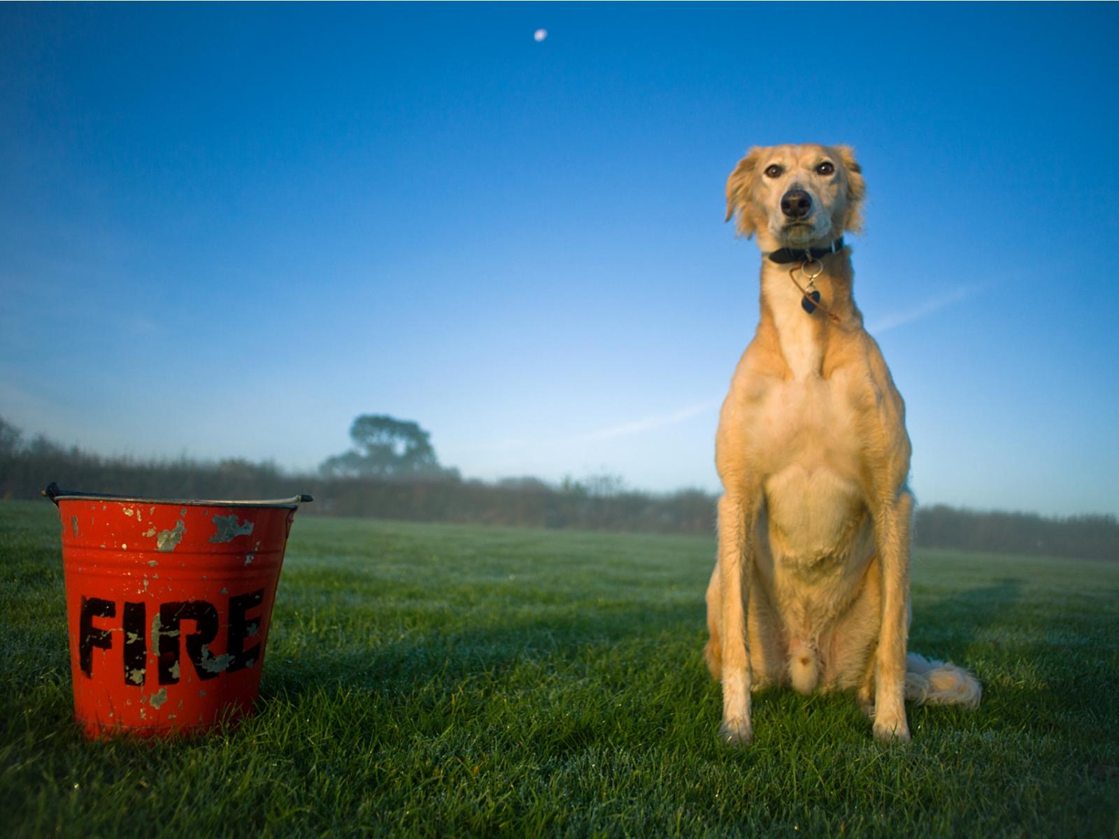 » Wallpaper Saluki dog with fire buckets