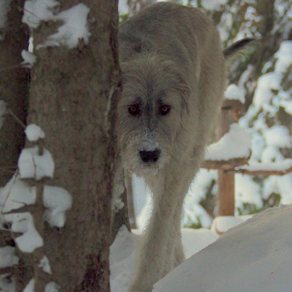 Wallpaper Big Irish Wolfhound escapes from little dog