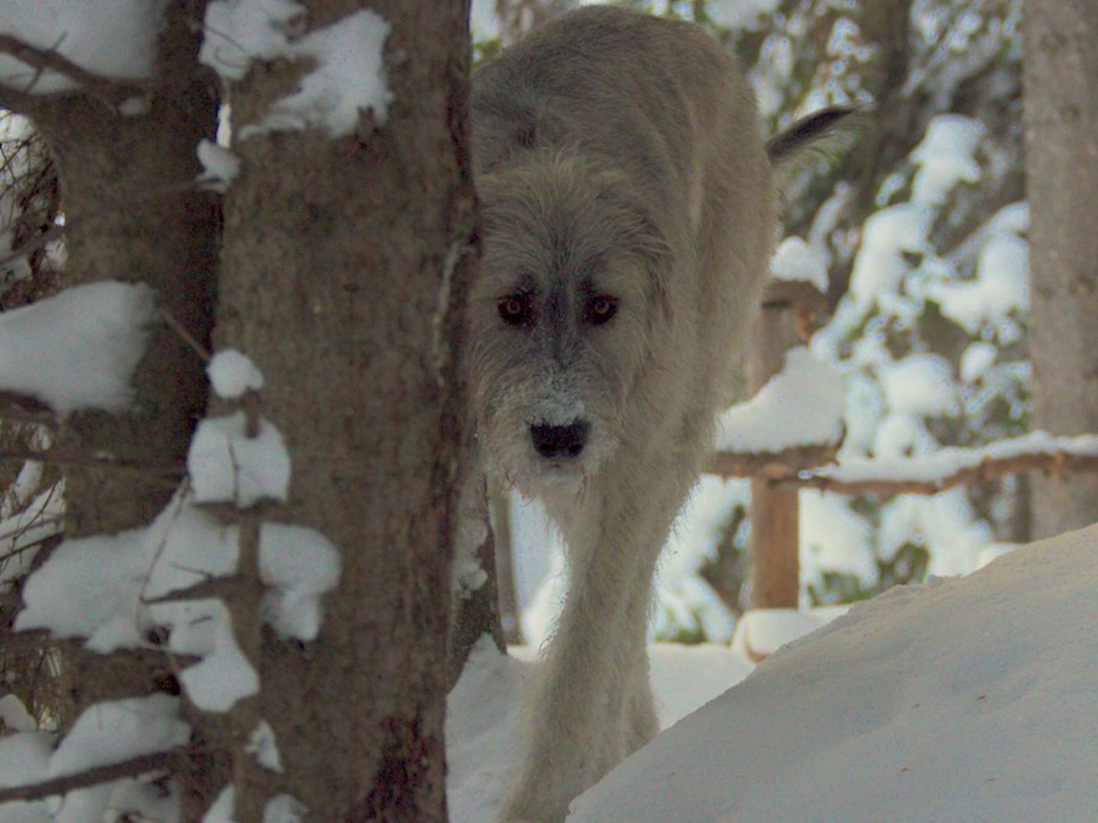 Wallpaper Big Irish Wolfhound escapes from little dog