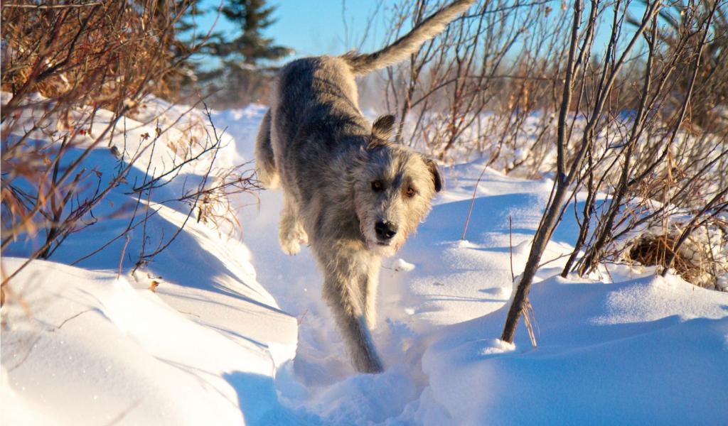 Wallpaper Big Irish Wolfhound escapes from little dog