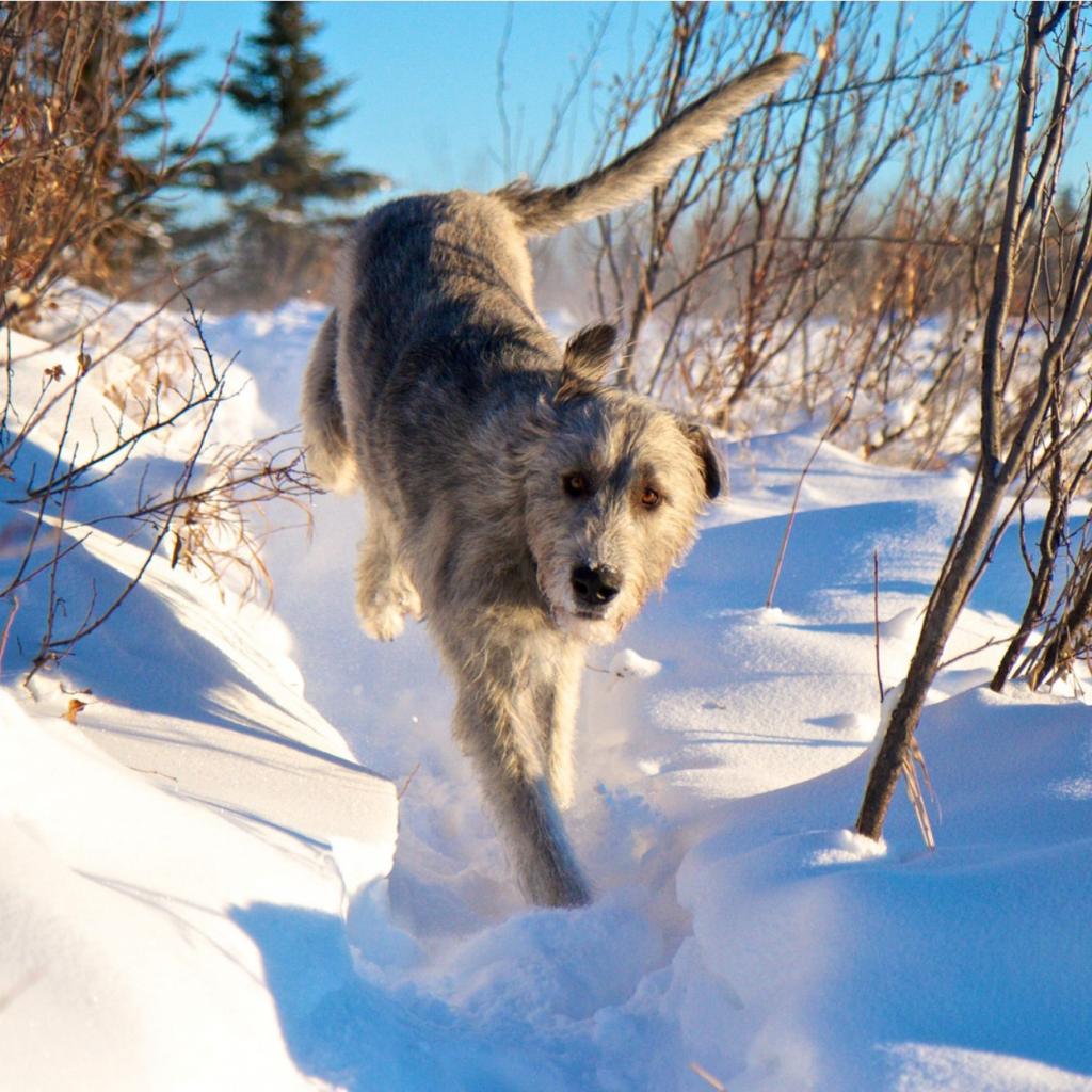 Wallpaper Big Irish Wolfhound escapes from little dog