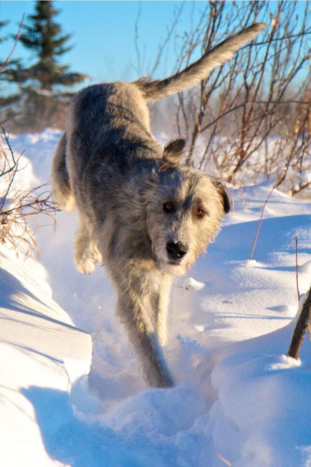 Wallpaper Big Irish Wolfhound escapes from little dog