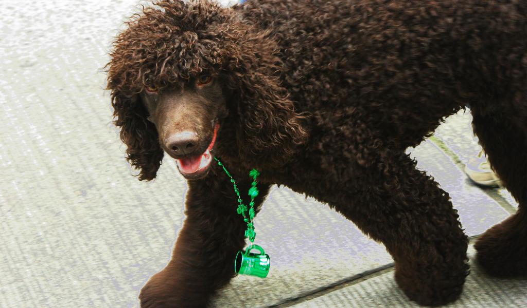 Wallpaper Irish Water Spaniel dog on a leash