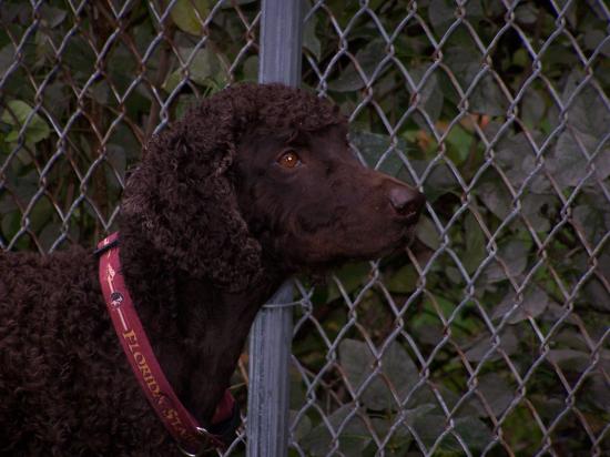 » Wallpaper Irish Water Spaniel at the fence