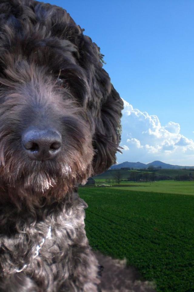 » Wallpaper Barbet dog on field background