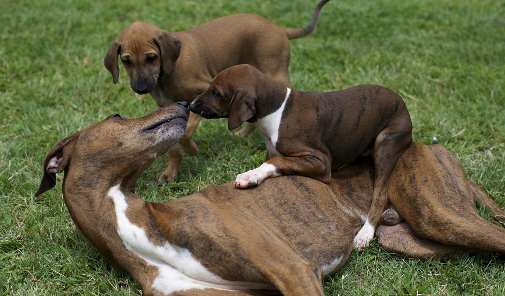» Wallpaper Azawakh Mom plays with puppies