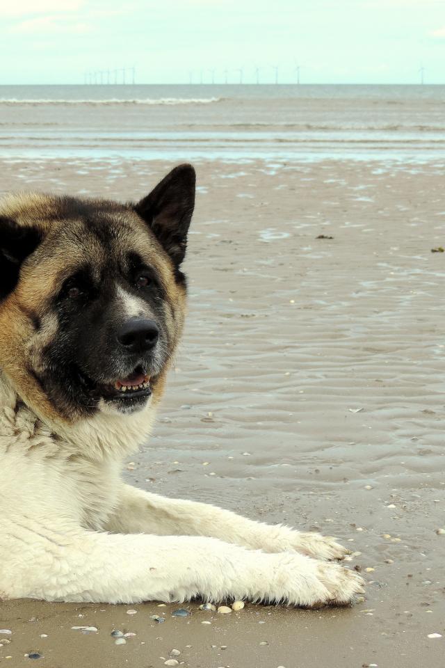 Wallpaper American Akita on the beach