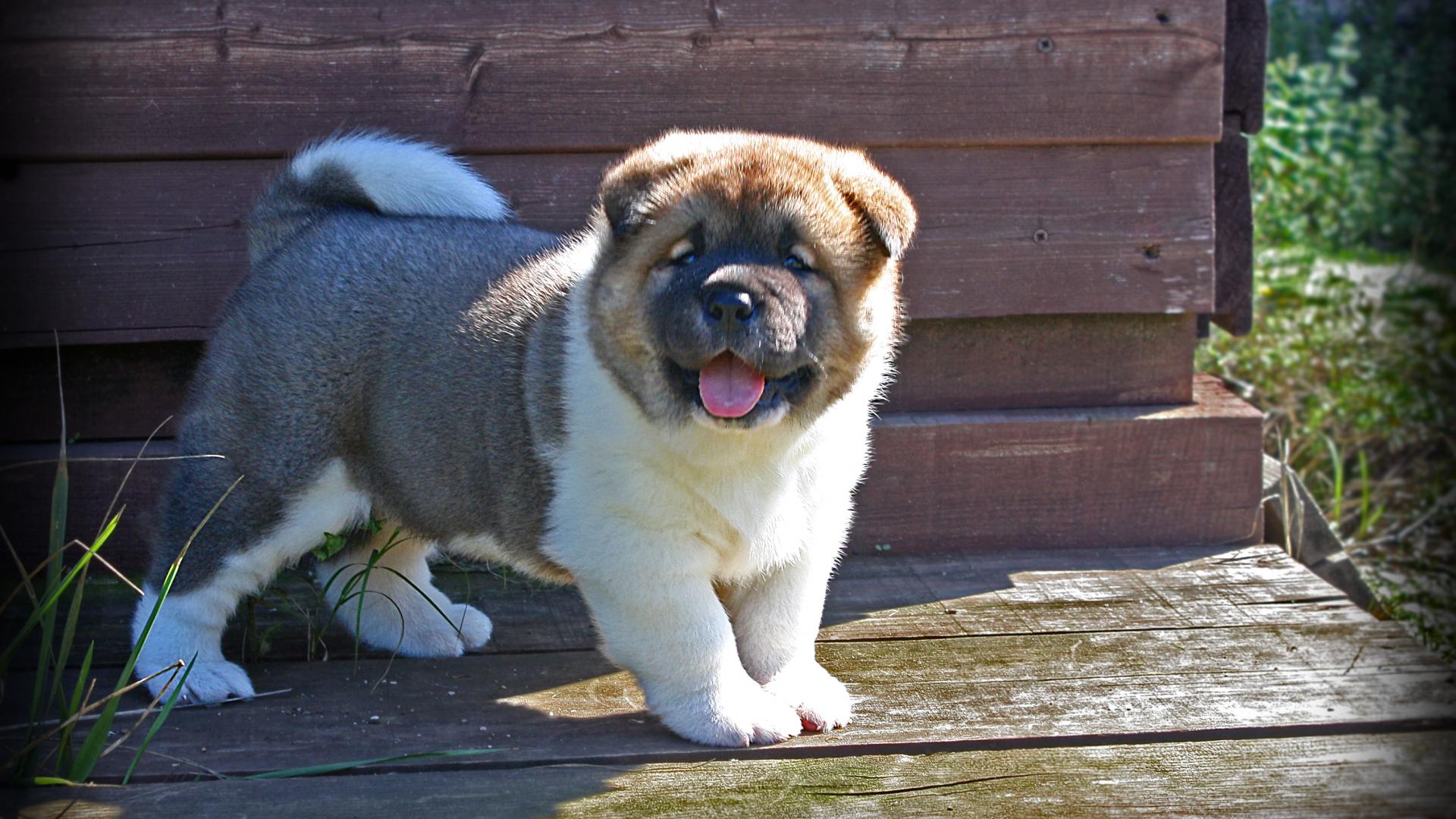 Wallpaper American Akita showing tongue
