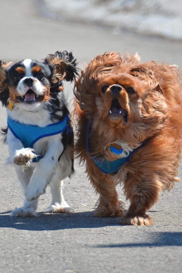 Wallpaper Two dogs Cavalier King Charles Spaniel on the beach