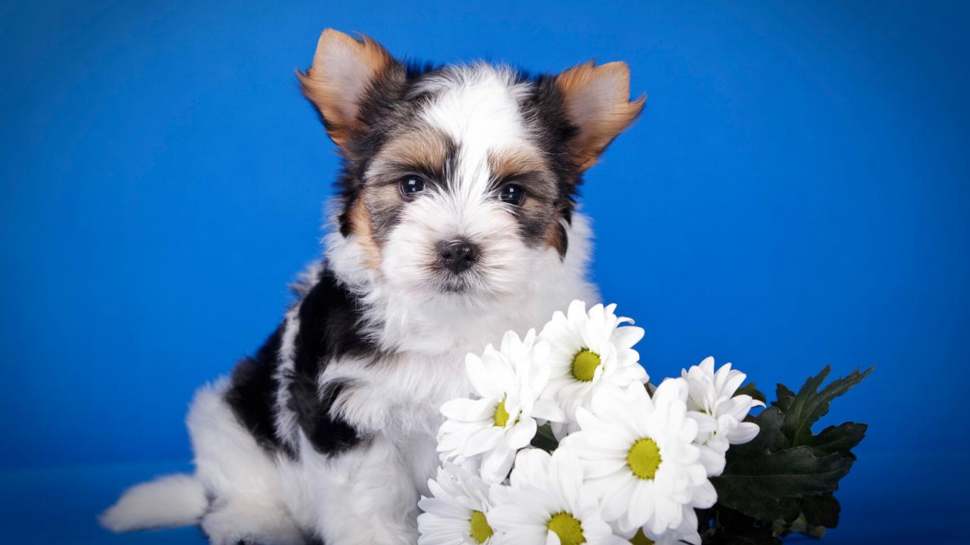 » Wallpaper Puppy with a bouquet of Beaver york